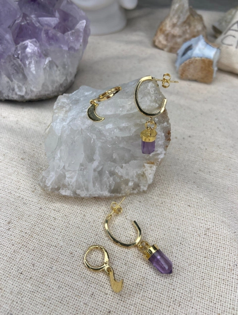 Descubra a beleza celestial do Brinco Celeste Ametista Duo banho Ouro 18k. Com suas duas argolinhas adornadas com cristais lapidados, este brinco é uma manifestação de sua conexão com o universo e sua busca por equilíbrio espiritual. O banho de ouro 18k confere um brilho radiante e duradouro, enquanto a ametista infunde cada detalhe com sua energia serena e protetora. Deixe-se envolver pela magia da ametista e adicione um toque de elegância celestial ao seu estilo.
